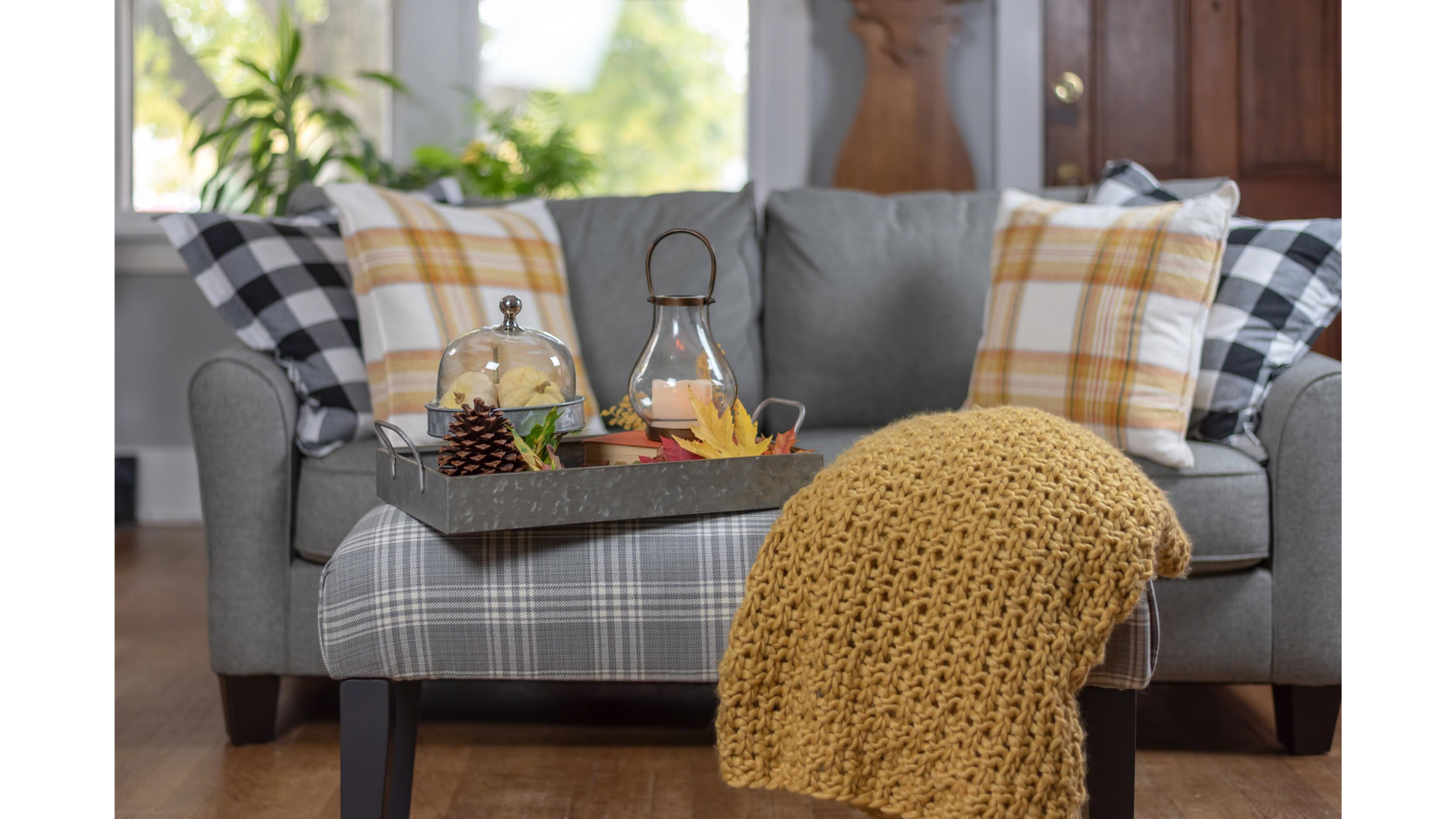 Combine these colors into your design with cozy accents that we associate with comfort, such as pillows and throws, or accessories that have texture from natural materials like baskets, rugs, or seasonal fruits and florals to give you that welcoming feeling of fall.
