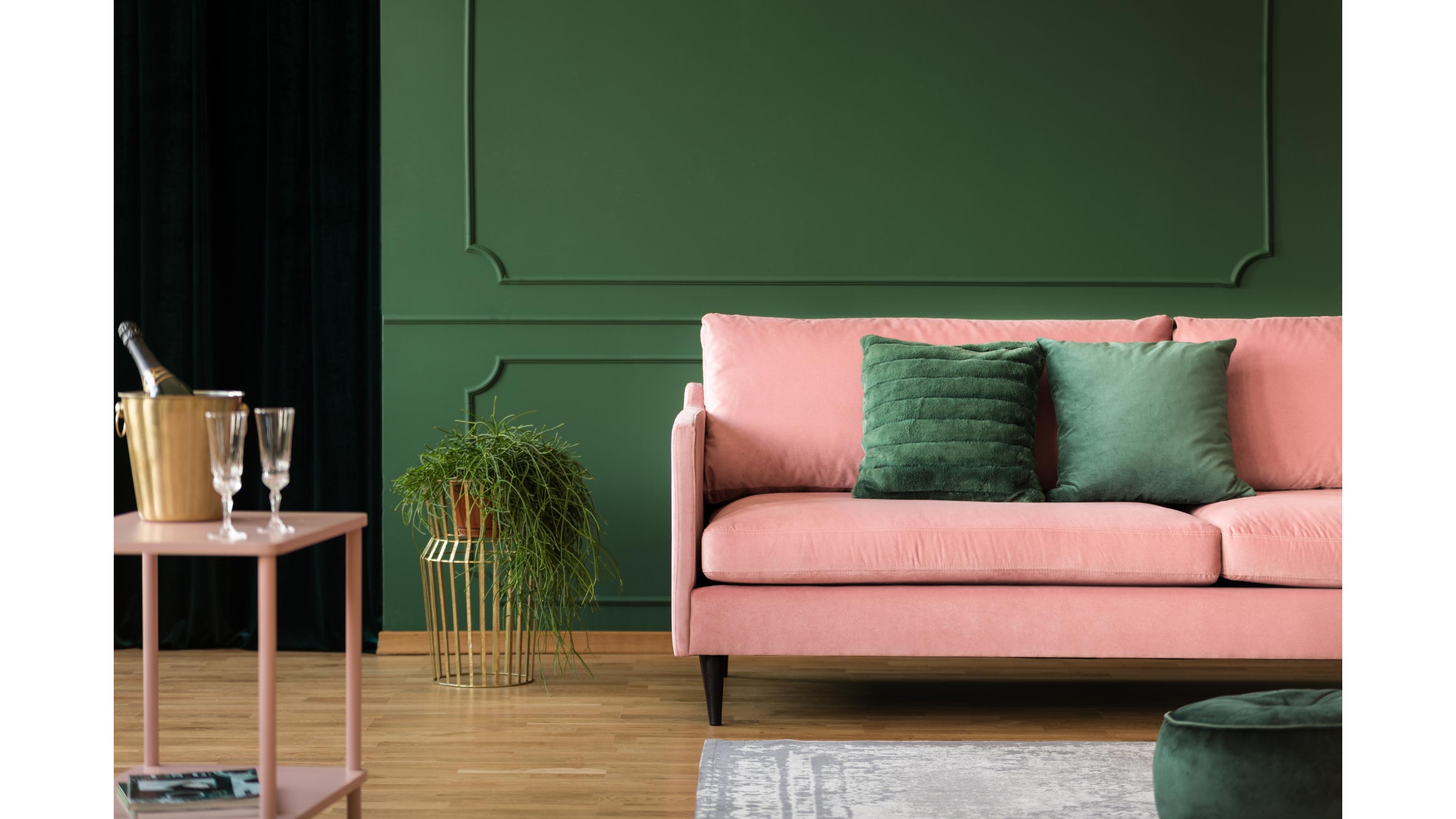 For more dominant pieces, such as a sofa, a softer hue like Rose Tan can be selected instead of a neutral. This color looks especially fresh against a more saturated background like Ultramarine Green, and even a lighter, more pastel color, when applied in a luxurious, plush texture, can be appropriate for the fall.